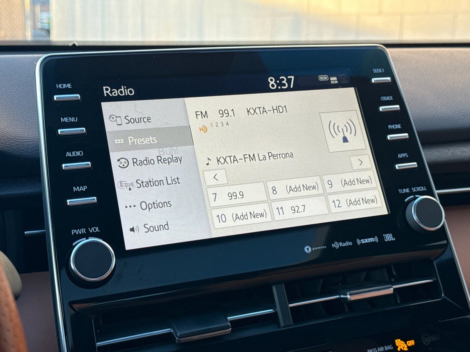 - Radio: Premium Audio w/JBL & Clari-Fi -inc: 14 speakers, subwoofer, 1200-watt amplifier, 9" touch screen, Amazon Alexa in-car app, Apple CarPlay, auxiliary audio jack, a USB 2.0 port w/iPod connectivity and control, dynamic navigation w/dynamic POI search and 3-year trial, dynamic voice recognition w/3-year trial, Bluetooth® hands-free phone capability and music streaming, Entune app suite, Siri Eyes Free, HD Radio, SiriusXM Satellite Radio w/3-month all-access trial, Entune 3.0 Toyota Connected Services, Safety Connect w/3-year trial, Service Connect w/3-year trial, Remote Connect w/6-month trial, Wi-Fi Connect up to 2GB w/6-month trial, Destination Assist Connect w/6-month trial